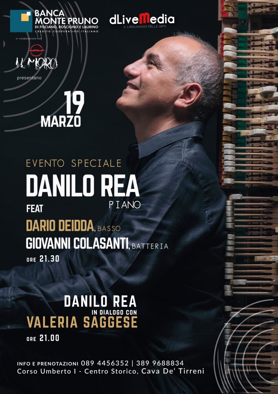 si terrà a “Il Moro” di Cava de’ Tirreni .Una serata tra musica e parole con Danilo Rea, tra i più autorevoli pianisti jazz italiani, protagonista di una carriera internazionale e di collaborazioni che attraversano il jazz e la musica d’autore.Rea, maestro dell’improvvisazione e dell’interplay, guiderà il pubblico in un concerto intenso ed elegante insieme a Dario Deidda, bassista di riferimento nel panorama jazz europeo e Giovanni Colasanti, batterista tra i più richiesti della scena contemporanea. Un viaggio sonoro che intreccia standard, riletture sorprendenti e momenti di pura creatività estemporanea.Il concerto sarà preceduto da un talk dell’artista in dialogo con la giornalista musicale Valeria Saggese.